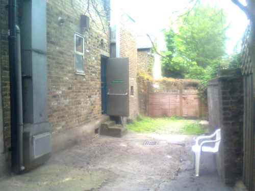 When I got there I found a very large (but unlocked) gate, and through it the whole alley had been cleaned up. But the picture was still there, and someone had set out a garden chair in front of it so you could sit down and look straight into the picture! I was thrilled!