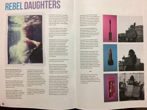 Here’s also a copy of the December 2017 issue of Doncopolitan, promoting the exhibition and featuring one of my images.